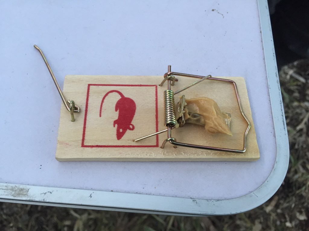 We used our recently purchased a mini fishing chair before losing a lure to a ‘snagfish’. During our riverside relaxation, we met a turtle who surfaced to bask in the sun and sit with us a while. Our other nature encounter was with the source of scurrying that had been heard the previous day. A mouse had made ‘Hovel’ (our trailer) its temporary home. Our neighbors kindly offered a trap after hearing a distinctive scream. Although the trap was empty in the morning, the mouse seemed to have received the message.